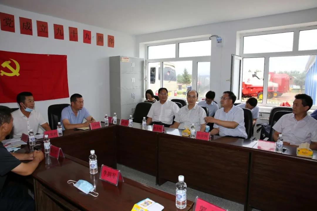 在興隆鄉(xiāng)新建村,焦開(kāi)河聽(tīng)取了大崗村、新發(fā)村和新建村關(guān)于農(nóng)機(jī)服務(wù)隊(duì)項(xiàng)目運(yùn)行情況、收益和減貧的情況介紹,詳細(xì)了解了項(xiàng)目幫扶機(jī)制及未來(lái)發(fā)展想法。焦開(kāi)河表示,農(nóng)機(jī)服務(wù)隊(duì)不僅實(shí)現(xiàn)了對(duì)貧困戶的幫扶,還可以通過(guò)創(chuàng)收、維護(hù)、解決就業(yè),帶動(dòng)農(nóng)業(yè)機(jī)械化發(fā)展,是一個(gè)可持續(xù)項(xiàng)目。他強(qiáng)調(diào),下一步要整合好各村農(nóng)機(jī)服務(wù)隊(duì),實(shí)現(xiàn)更大規(guī)模的連片種植。焦開(kāi)河專門叮囑集團(tuán)公司派駐大崗村第一書(shū)記吳寶明,要充分發(fā)揮駐村第一書(shū)記作用,抓好黨建工作,積極培育致富帶頭人,為大崗村后續(xù)發(fā)展奠定好基礎(chǔ)。