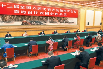 3月7日,中共中央總書記、國家主席、中央軍委主席習(xí)近平參加十三屆全國人大四次會(huì)議青海代表團(tuán)的審議。新華社記者 李濤攝